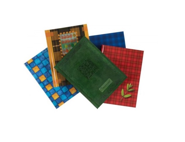 Užrašų knygutė kietu kartono viršeliu su įvairiais piešiniais.