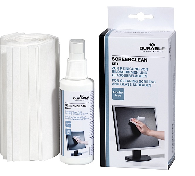 Ekranų valymo rinkinį sudaro: purškiamas valomasis skystis ir sausos, nebraižančios valomo paviršiaus, servetėlės. Tinkamas naudoti monitorių, nešiojamų kompiuterių, televizorių, telefonų ekranų valymui. Taip pat galima valyti ekranų filtrus, kopijavimo aparatų ir skenerių stiklinius paviršius. Sudėtyje nėra alkoholio. Skystis yra antistatinis, nekenkia aplinkai.