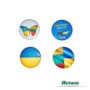 Apvalios formos įsegamas ženkliukas pagamintas iš metalo ir plastiko. Su įvairių šalių tautine simbolika.