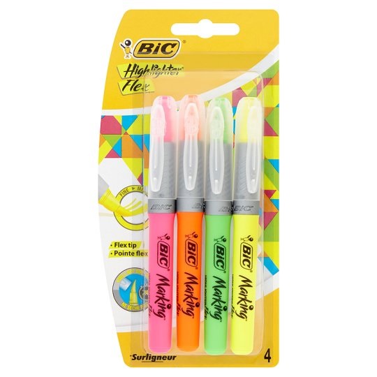 Žymeklių tekstui Highlighter Flex 4 spalvų rinkinys BIC
